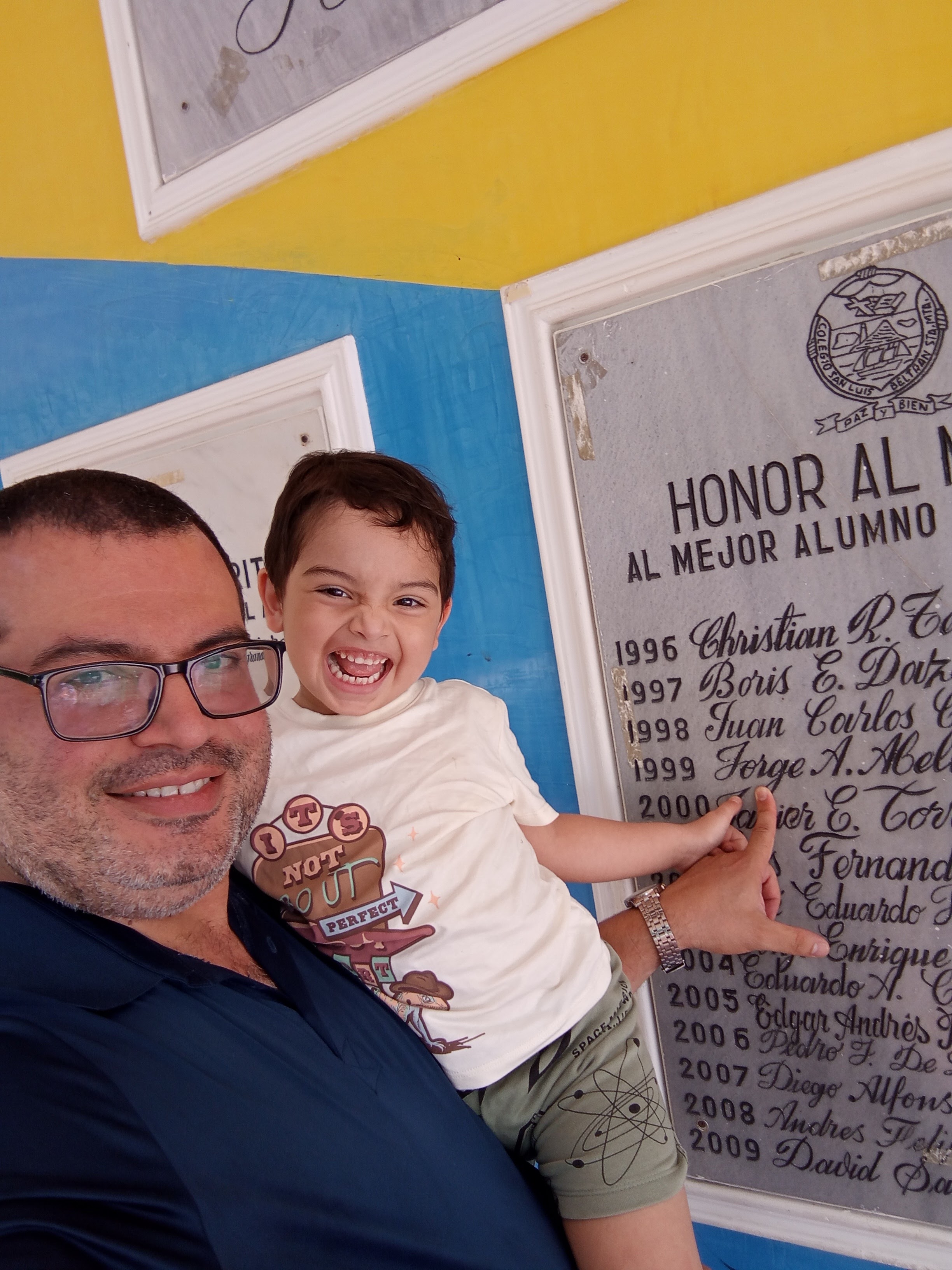 En 1999, quedó mi nombre sellado en esta placa de mármol, si bien fue un reto personal que busqué con mucho trabajo y dedicación, fue un logro obtenido gracias a mis profesores y amigos del colegio.